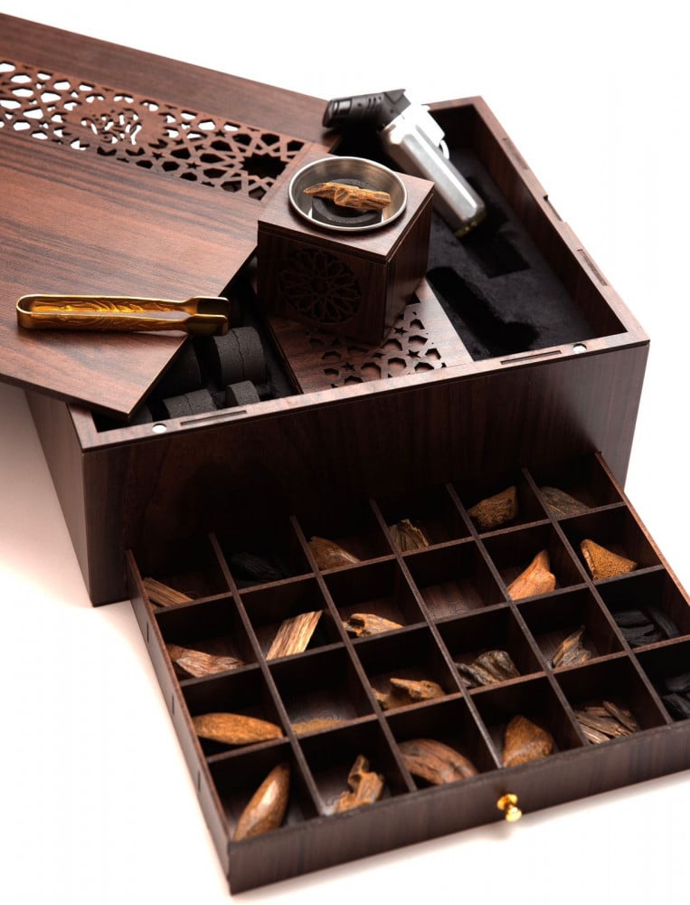 الهدية الرمضانية عبارة عن صندوق خشبي مزين بنقش اسلامي